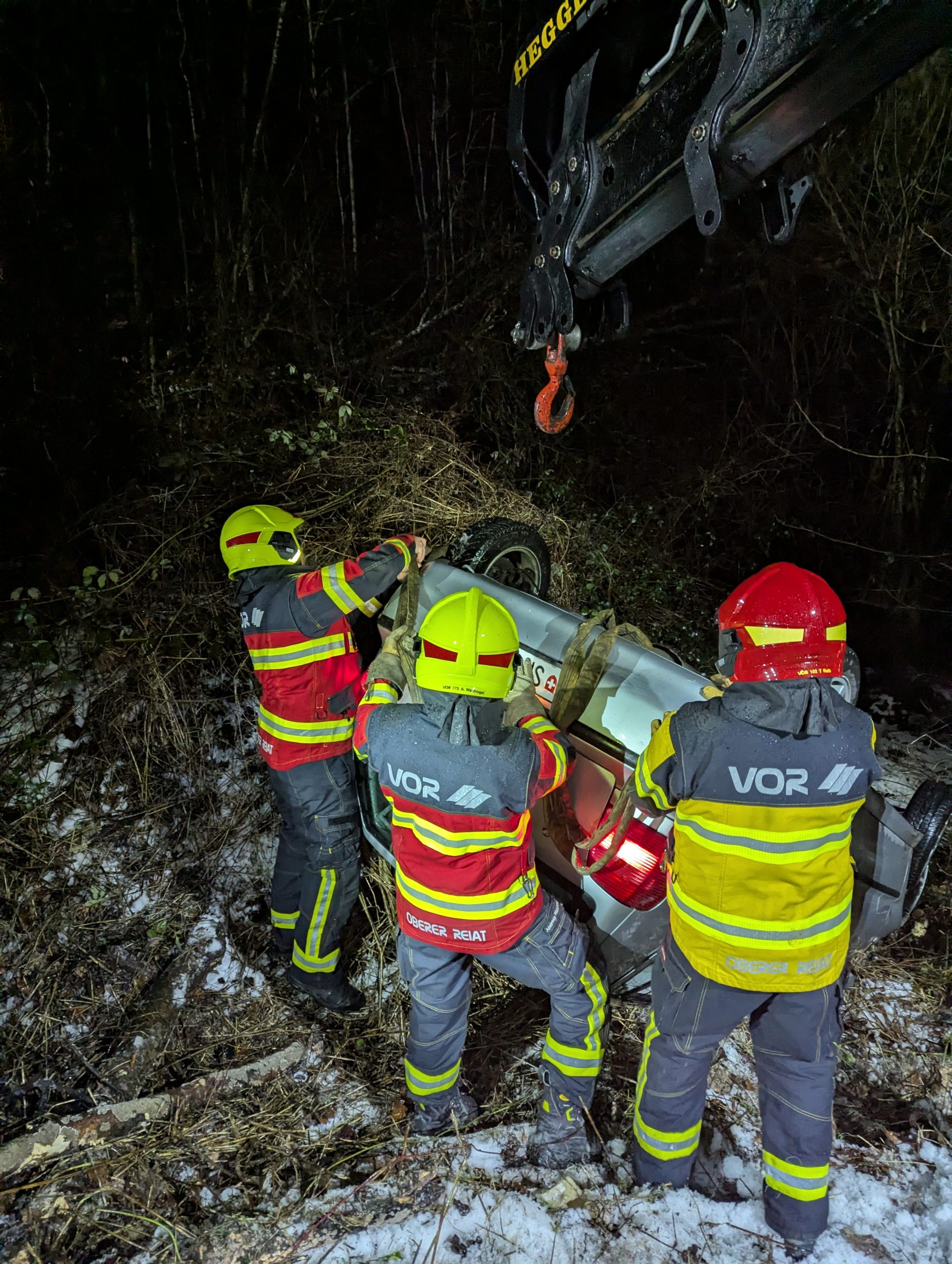 Zweiter Alarm des Tages. Ein Verkehrsunfall Richtung Thayngen war gemeldet. Der Brandschutz wurde sichergestellt und die Strasse gesperrt.