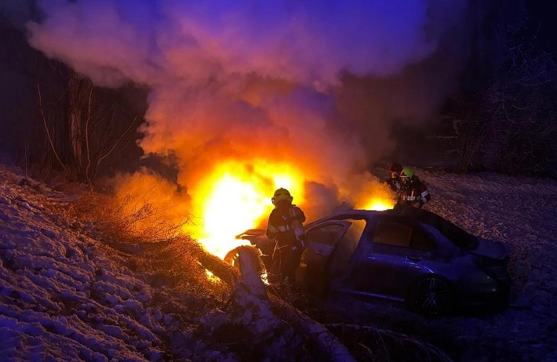Verkehrsunfall mit Brand beim Schloss Herblingen.