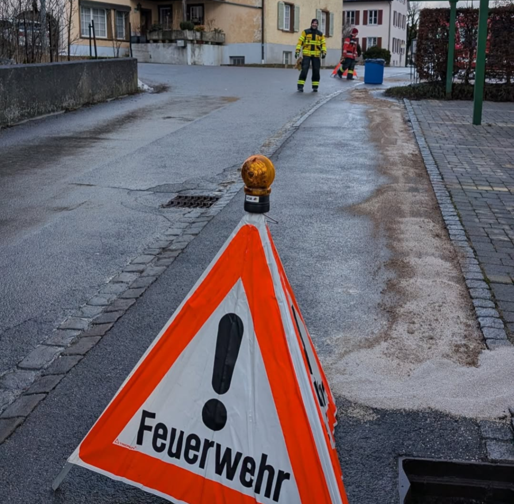 Ein Öllache auf dem Volg Parkplatz musste abgestreut werden.